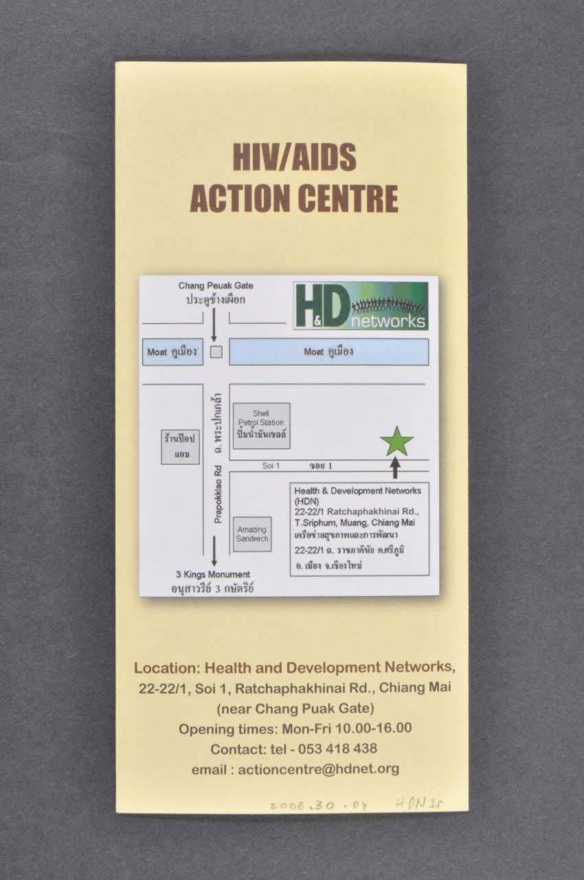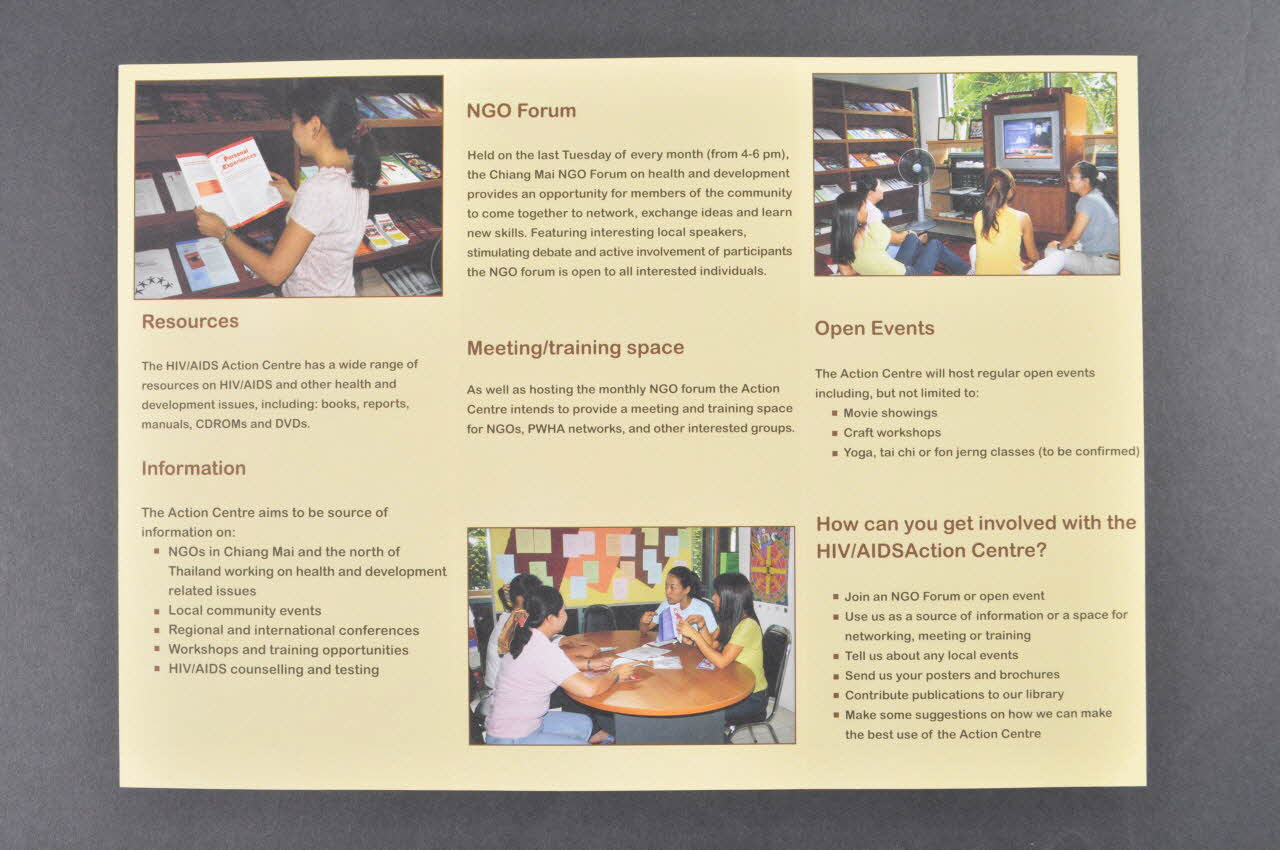 Dépliant, "HIV/AIDS Action Centre" "Take action on HIV/AIDS" (Agissez contre le VIH/Sida)