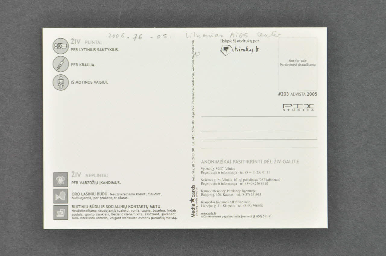 Lietuvos AIDS centras Vytenio 59/37, Vilnius (en bas à droite, en lituanien), rectoLégende