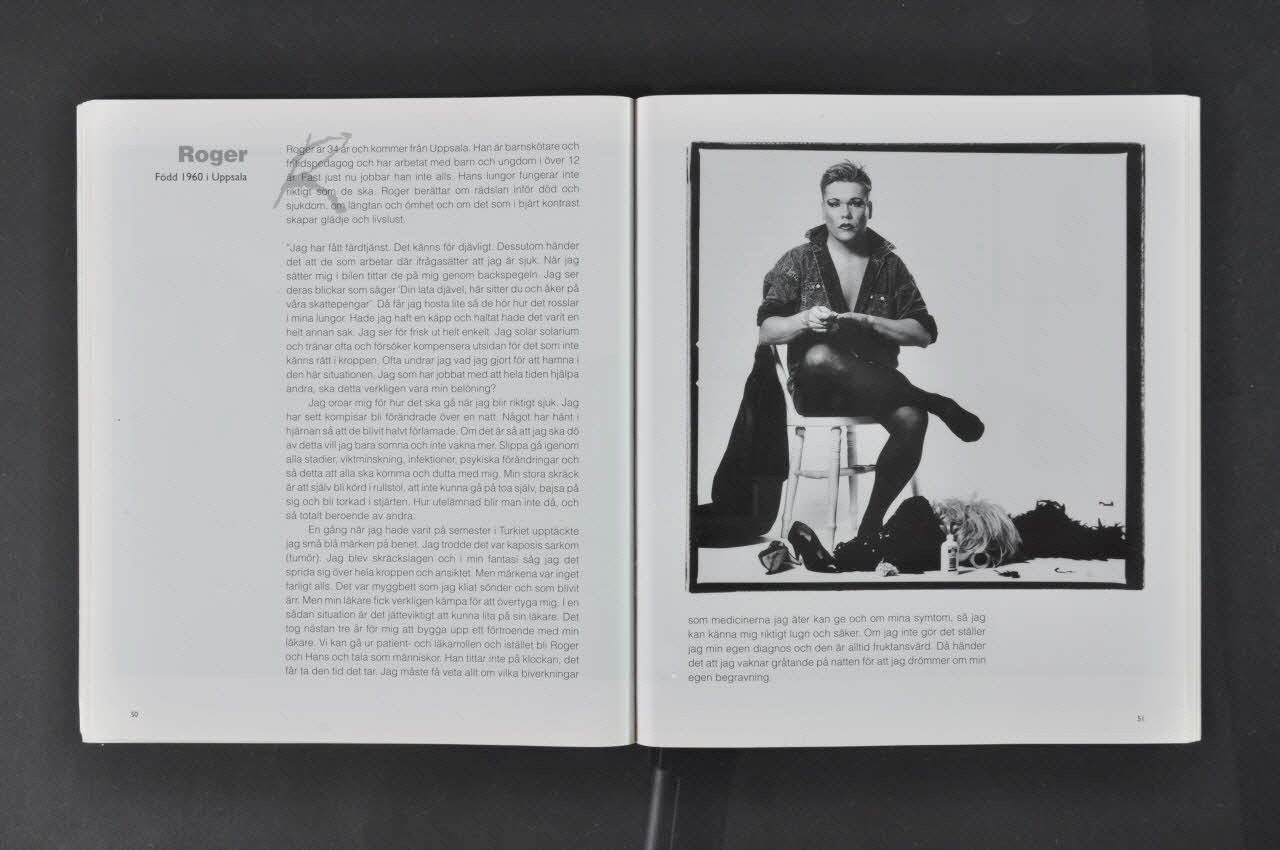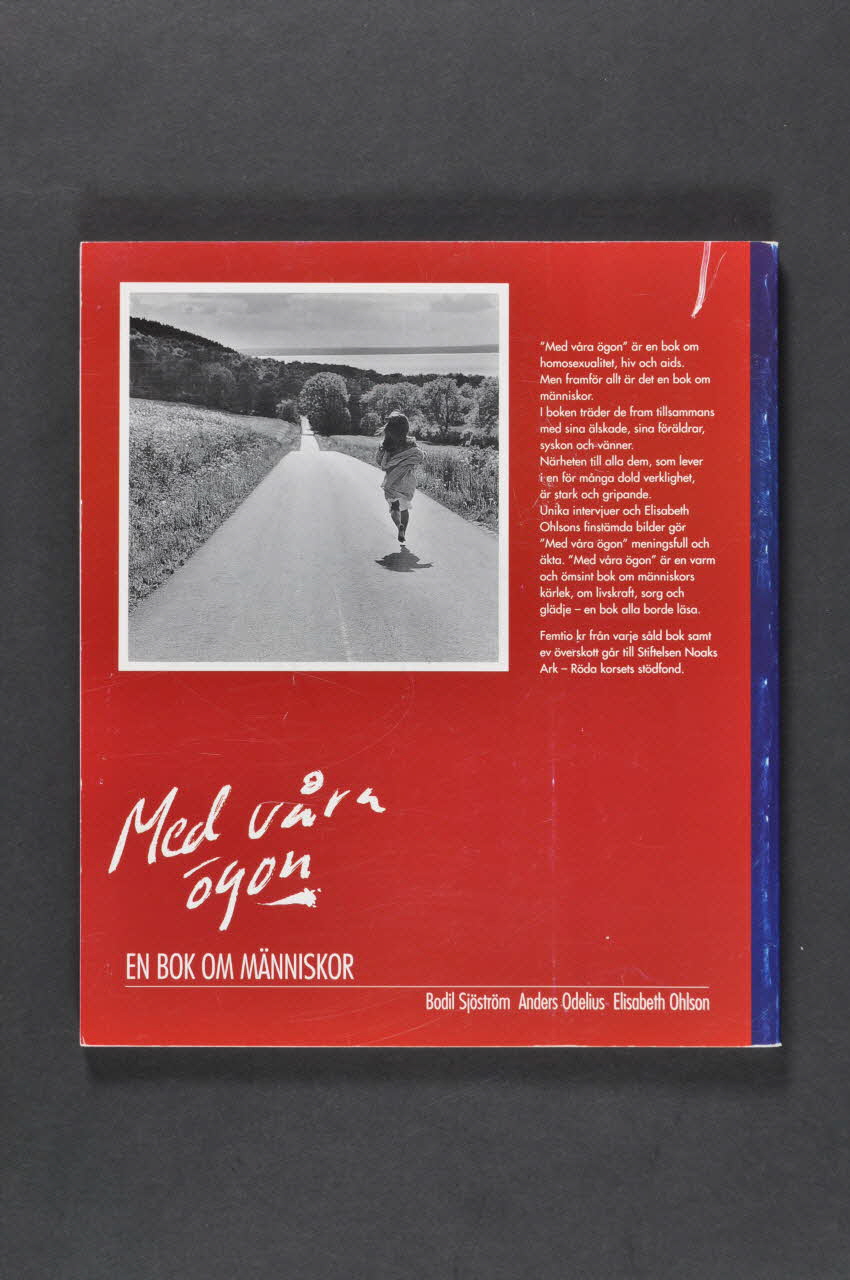 Le texte, rédigé en suédois, est imprimé en noir et illustré de photographies en noir et blanc, essentiellement des portraits. La couverture est rouge à dos bleu, avec en première page une photographie d'un homme marchant sur une plage, de profil, en noir et blanc avec sa chemise colorisée couleur orange pâle. Il s'agit d'un livre sur l'homosexualité, le VIH et le sida. Il présente, avec interviews, une série d'hommes et de femmes, réunis sous plusieurs chapitres. ancienne description : "Achat sur régie d'avance 250 couronnes ou 26,43 euros"Inscriptions