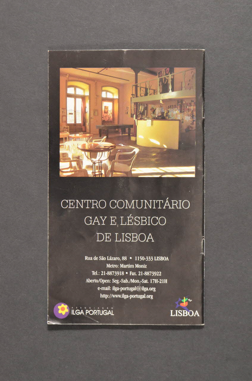 CENTRO COMUNITARIO // GAY E LESBICO // DE LISBOA (Le texte en caractères blancs est imprimé sur la quatrième de couverture.), sur la couvertureDate
