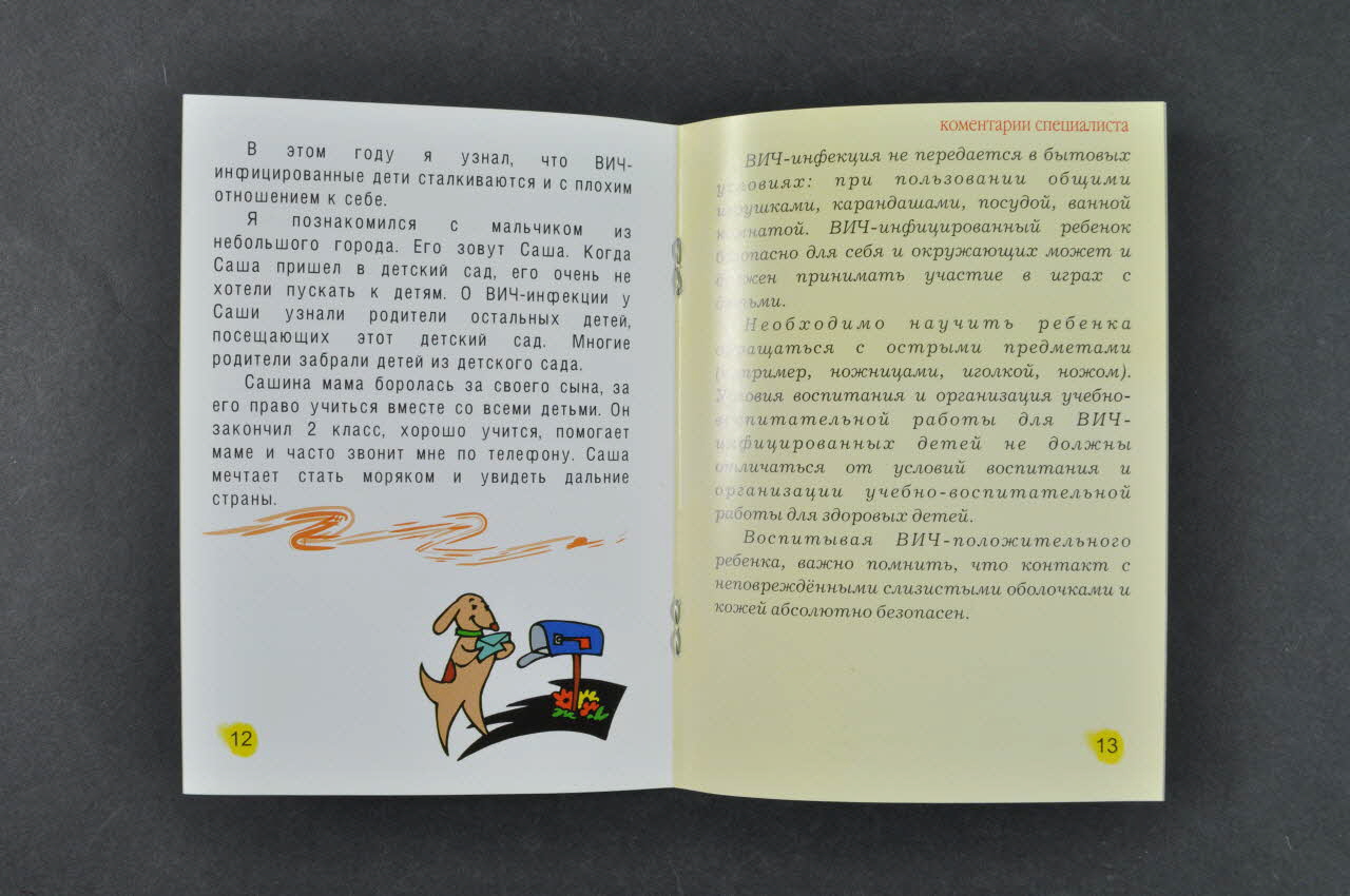 A l'intérieur, les pages sont à fond blanc ou à fond jaune, avec des textes en noir, des dessins de style BD et des photographies en plein page d'enfants.