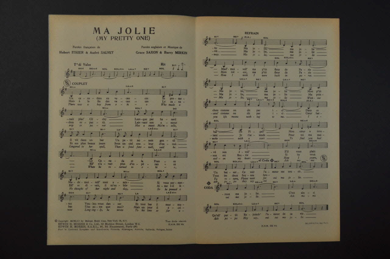Des inscriptions renseignent le titre, les auteurs, les exécutants et l'éditeur. A l'intérieur, partition et paroles de la chanson. Au dos, liste d'autres partitions publiées par l'éditeur.Dimensions et poids