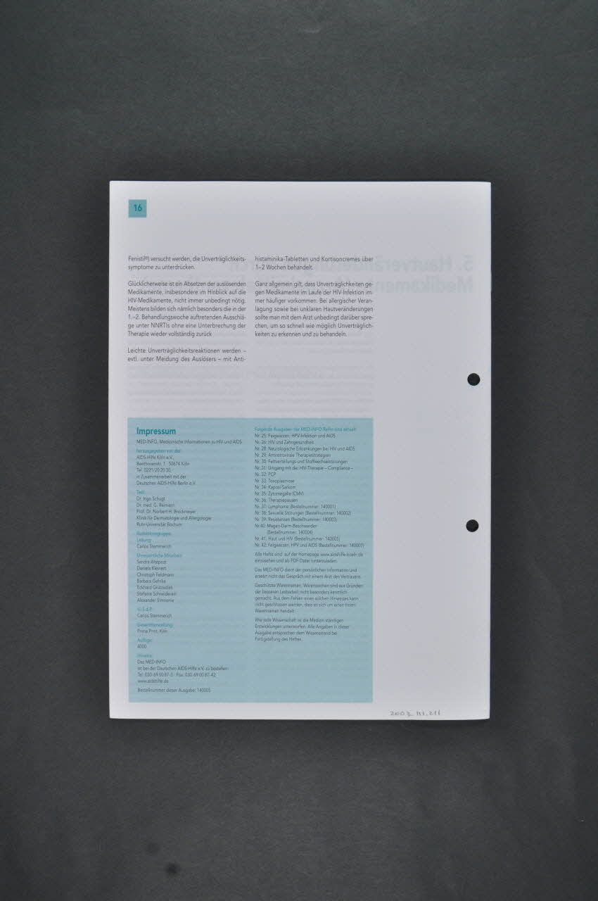 Deutsche // AIDS-Hilfe e.V. (Dans l'angle inférieur gauche de la page, en lettres vertes, mêlées au logo.), rectoSous-titre