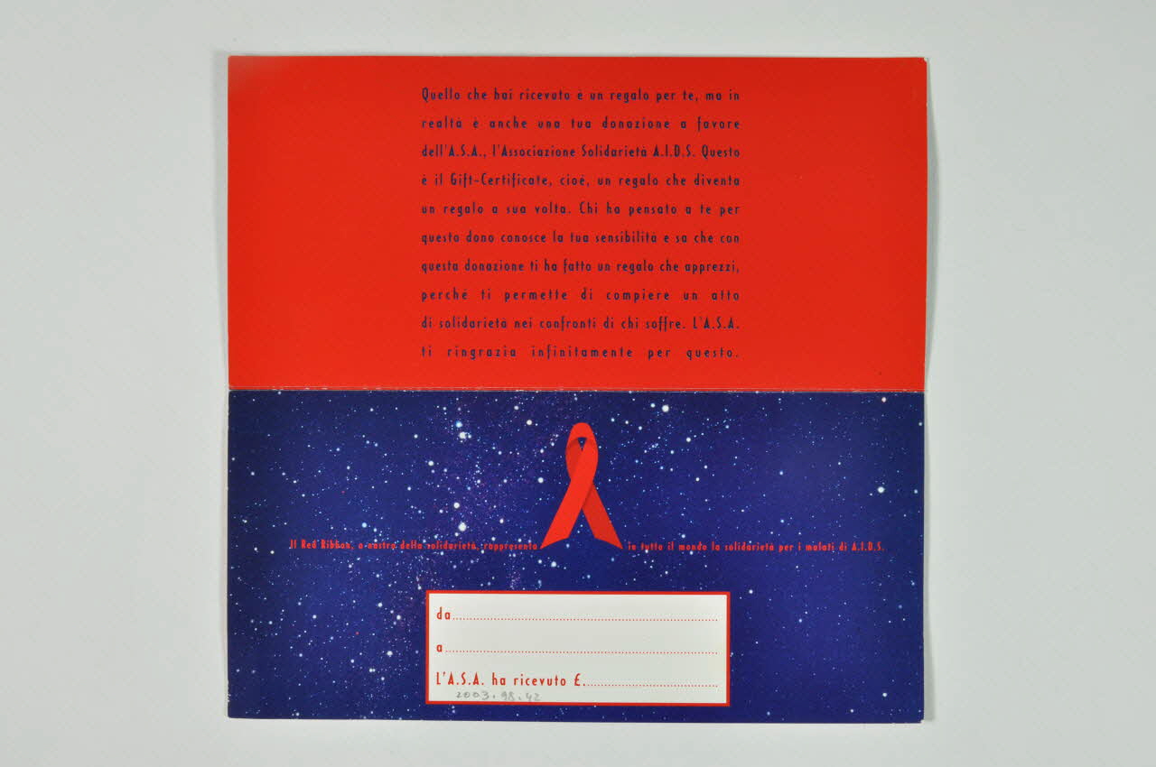 Carte de souscription, "Questo natale invece del solito presente hai regalato un futuro" (Ce Noël, contrairement aux cadeaux habituels, tu as un futur en cadeau" (vérifier la traduction)