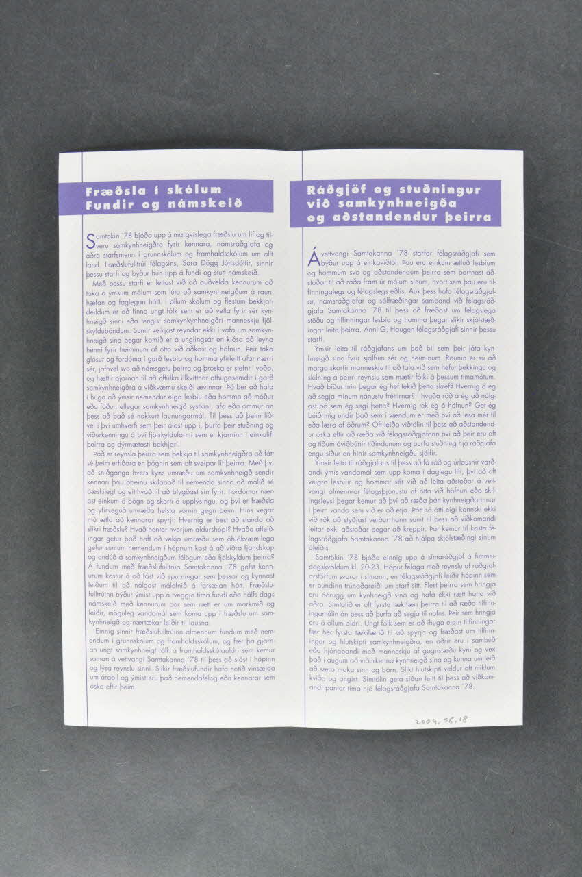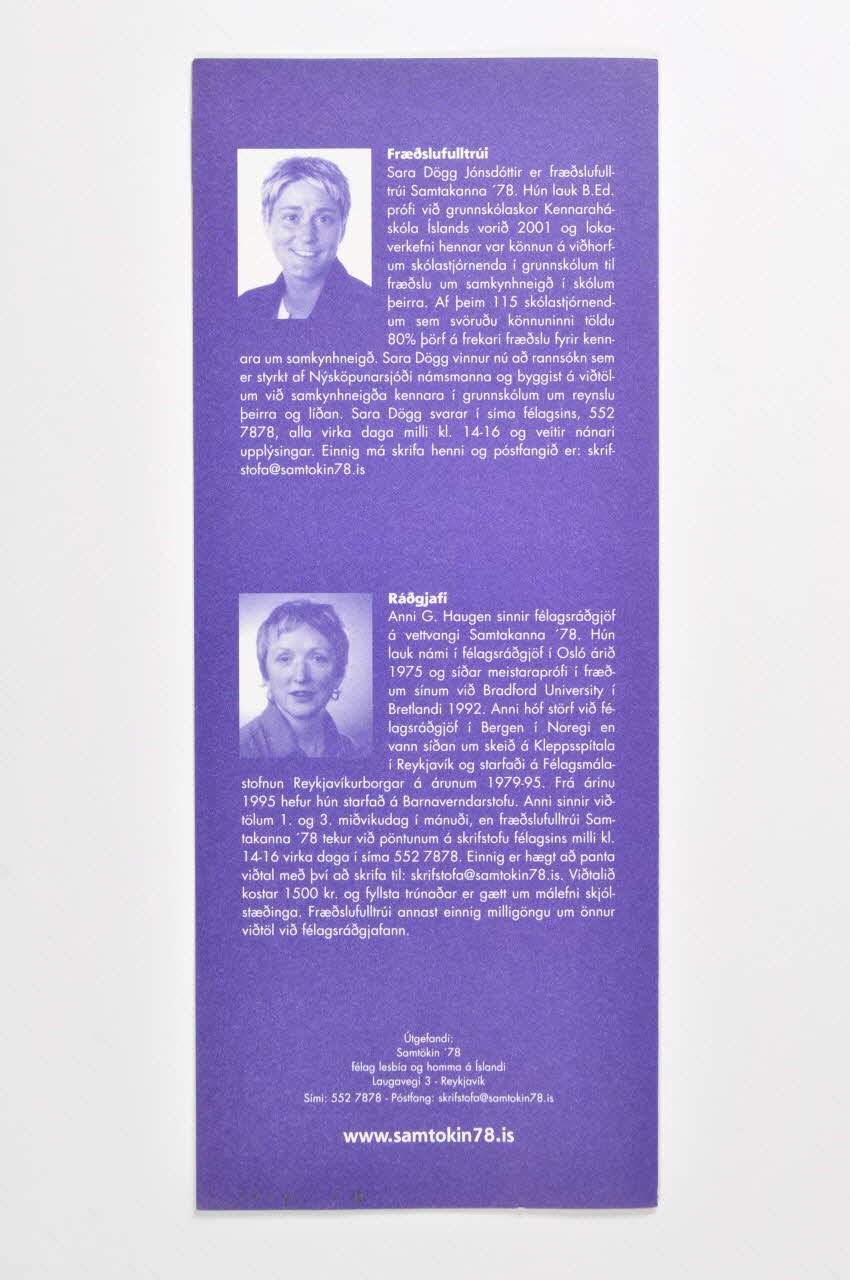 Dépliant, "Fraedsla Mannvernd Synileiki" (traduction)