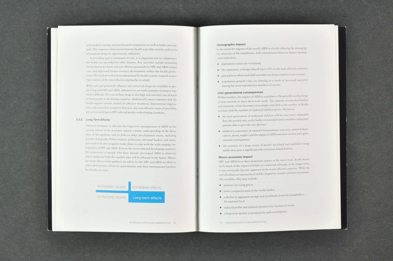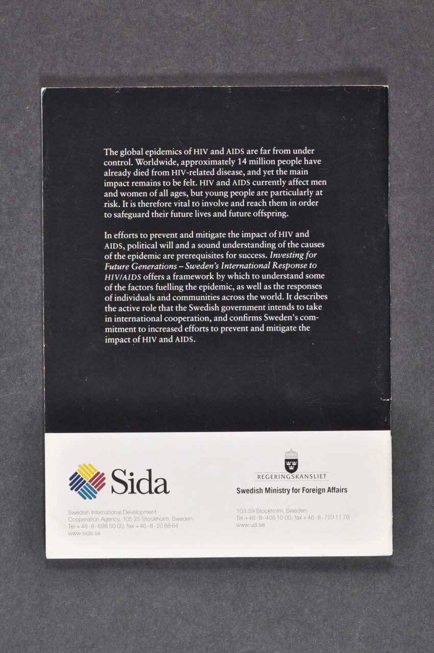 Investing for // future generations // Sweden's International Response to HIV/AIDS (Imprimés en blanc sur un bandeau noir.), rectoSommaire