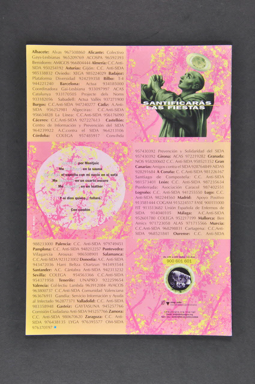 Sur la couverture, figurent le nom de la revue en bleu et rouge en partie supérieure, la date et le numéro juste en dessous, puis les titres des articles en bas à gauche en caractères rouges et blancs, le tout sur une photographie couleur pleine page représentant trois femmes. Le dos, sur fond rose et jaune, se décomposent en six cases et listent les adresses d'associations. Un saint prie dans la case supérieure droite, tandis que la tête du Christ apparaît dans une vignette ronde dans la case inférieure droite. L'intérieur de la revue est présenté de façon aérée : les textes imprimés en caractères noirs sont souvent surmontés de titres colorés, et accompagnés d'illustrations et de photographies couleur. Le sommaire est visible en page 5. Au centre, se trouve une sorte de jeu de l'oie sur les traitements.Inscriptions