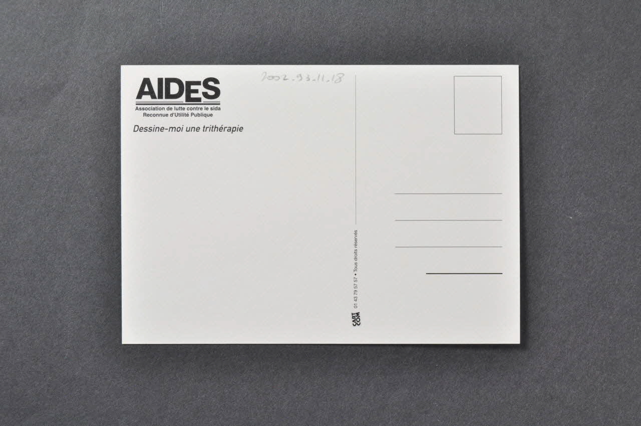 AIDES // Association de lutte contre le sida // Reconnue d'Utilité Publique // // Dessine-moi une trithérapie (angle supérieur gauche), versoSignature, auteur
