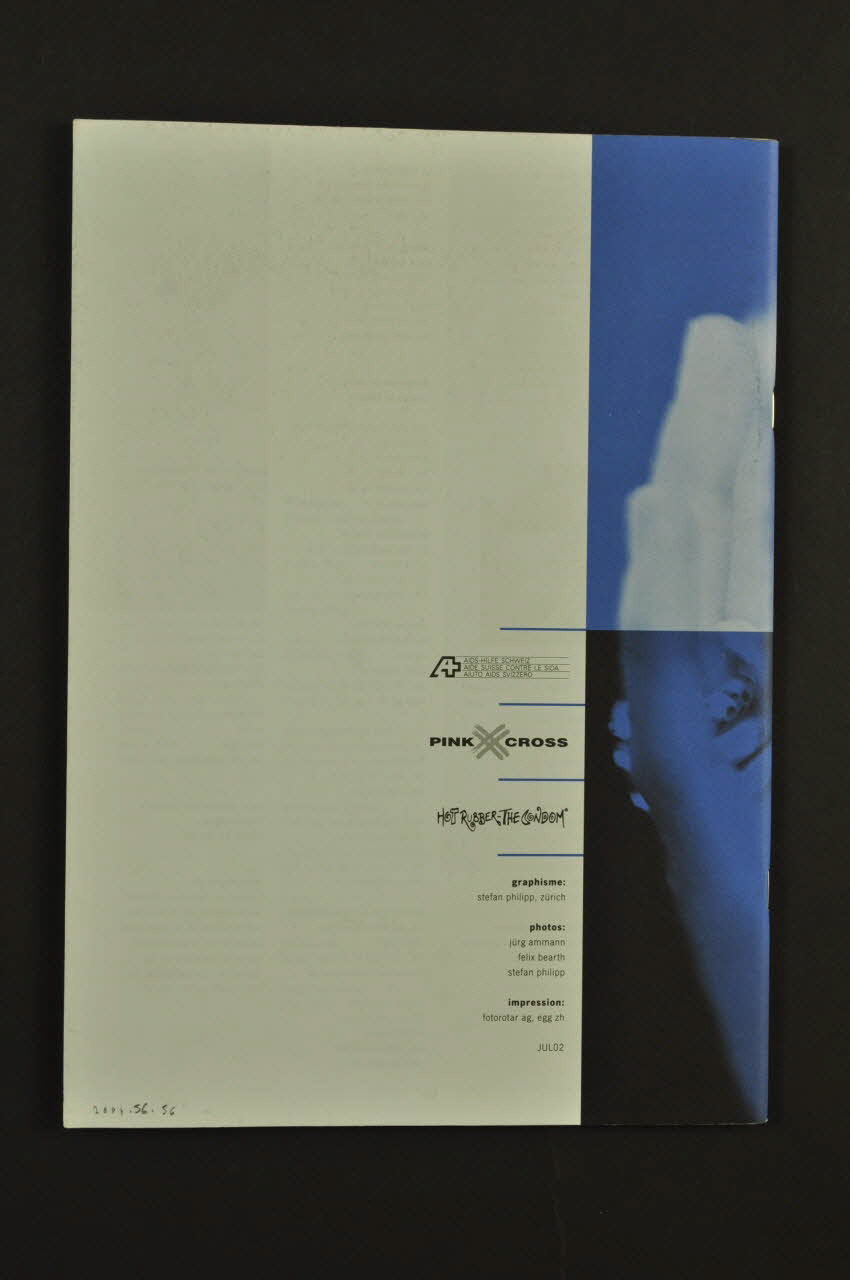 AIDE SUISSE CONTRE LE SIDA // // PINK CROSS // // HOT RUBBER - THE CONDOM (dans la partie inférieure de l'arrière de la couverture), en basLégende