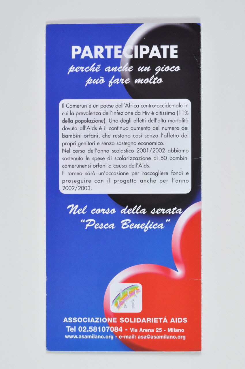 Dépliant, "Torneo di Burraco. Progetto scolarizzazione Camerun" (Tournée de ???. Projet de scolarisation au Cameroun)