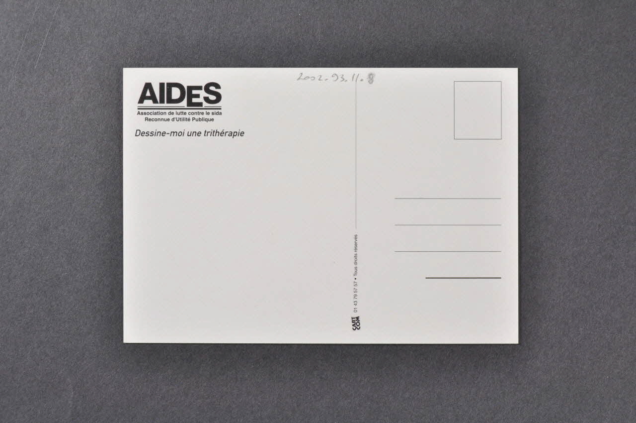 Date : 2002Utilisateur : AIDESCampagne de mobilisation de l’Association AIDES pour l’accès aux traitements en Afrique, et de soutien aux 15 associations africaines partenaires de l’association au Burkina (3), Burundi (1), Côte d'Ivoire (4), Guinée (2), Mali (2), Niger (1), Sénégal (2). Le CRIPS est un des lieux de vente de ces cartes.
