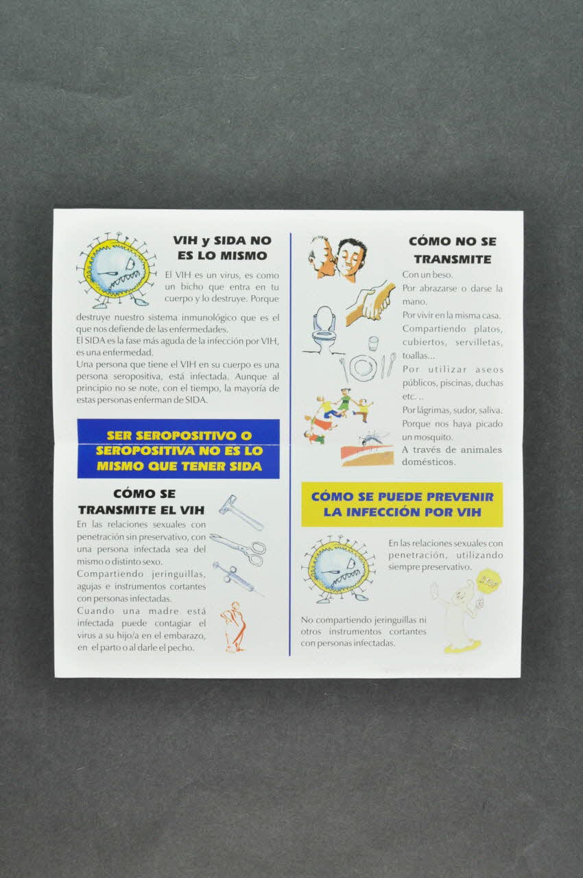 - VIH y SIDA NO ES LO MISMO // - COMO SE TRANSMITE EL VIH // - COMO NO SE TRANSMITE (inscription en noir sur fond blanc), à l'intérieurDécor