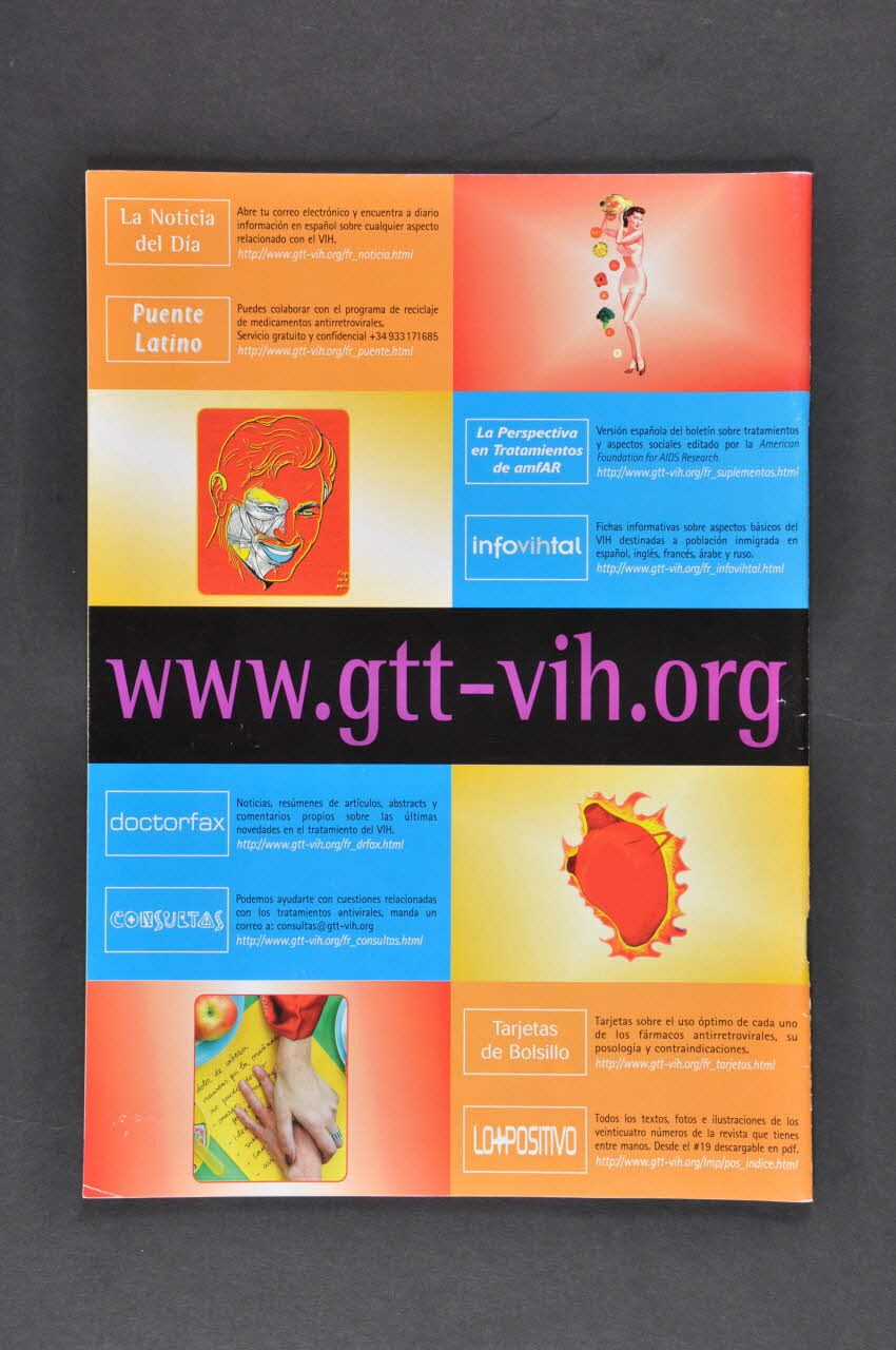 LO + POSITIVO (Titre de la revue en haut), sur la couvertureEn mi // experiencia. // Pacientes y medicos hablan de sus relaciones (En bas, en caractères oranges et rouges), sur la couvertureSommaire