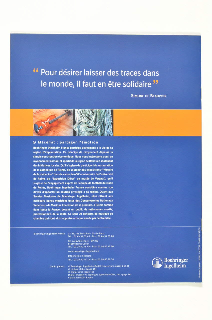 - Espoir, vie : Cardio-vasculaire / Pneumologie / Infections à VIH ("Viramune (néviparine) premier antirétroviral d'une nouvelle classe les analogues non nucléosidique de la reverse transcriptase, permet d'offrir une nouvelle alternative thérapeutique aux praticiens dans les protocoles de trithérapies. Le développement en cours de tipranavir (première antiprotéase non peptidique) confirme l'engagement de Boehringer Ingelheim dans ce domaine.") / Urologie / Rhumatologie / Médication familiale : une gamme cohérente et efficace / Santé animale : une expertise reconnue et une croissance prometteuse