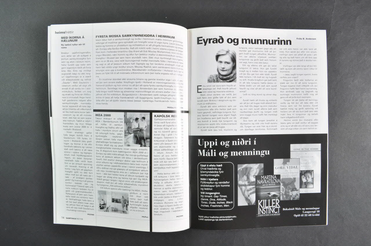 Revue de l'association gay et lesbienne islandaise Samtaka, de format A4, de trente pages de papier glacé blanc, reliées par deux agrafes sous une couverture cartonnée.
