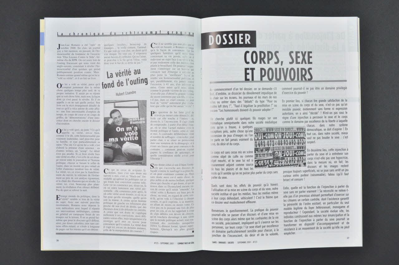 DOSSIER // CORPS, SEXE // ET POUVOIRS // // L'idéologie du // développement social // // La prise en charge // des migrants vivant // avec le VIH // // REPORTAGE // L'oppression chinoise // contre le peuple tibétain (titres des articles sur la droite de la couverture, en blanc), à droiteSession spéciale de l'ONU sur le sida : UNE PRISE DE PAROLE POLITIQUE (sur bandeau noir sur la couverture), en basDate