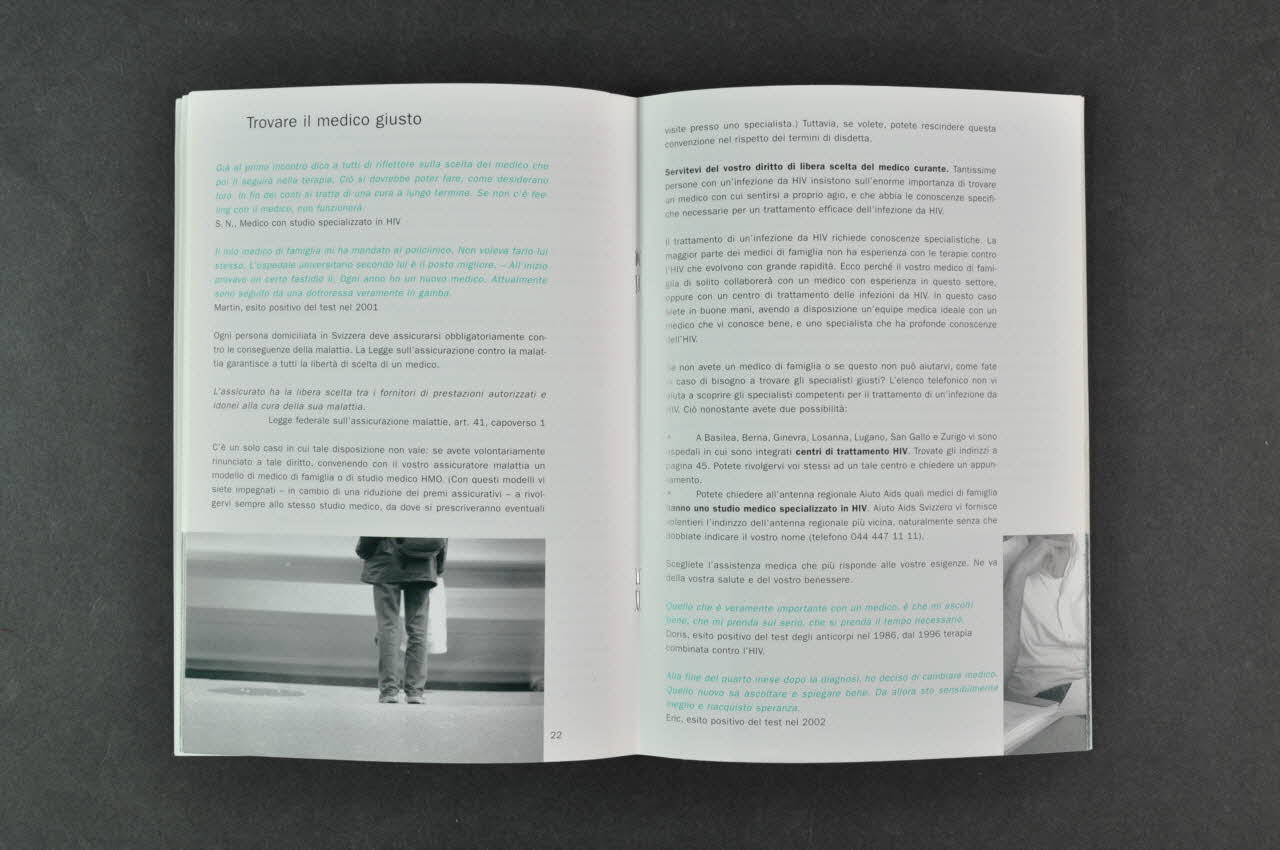- diagnostic, pénalisation, traitement, transmission, secret professionnel, hygiène, en parler, dépistage, annonce de la séropositivité, médecine alternative, psychologie, étranger, non transmission, travail, langue italienne, témoignage, préservatif, choc, sexualité, information, assurance, début du traitement, médecin