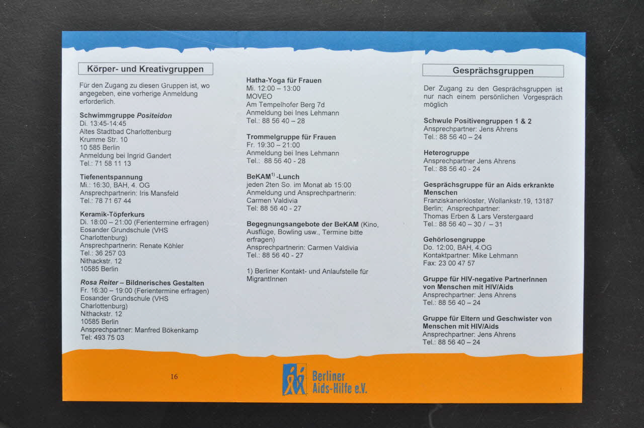 Dépliant, "Gruppenangebote in der BAH" (Groupes de rencontre dans la BAH)