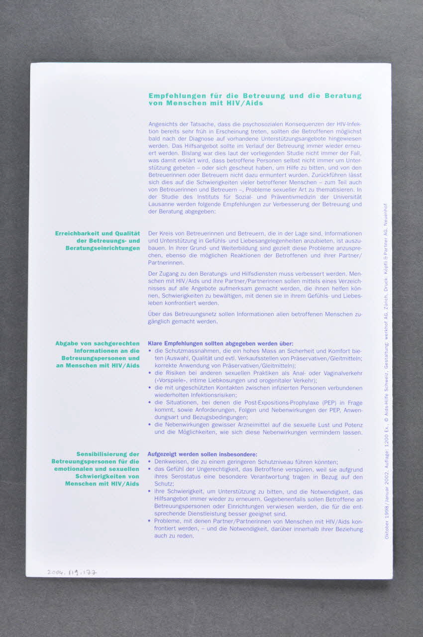 - Diffusion d'informations adéquates aux intervenants et aux personnes avec le VIH/sida