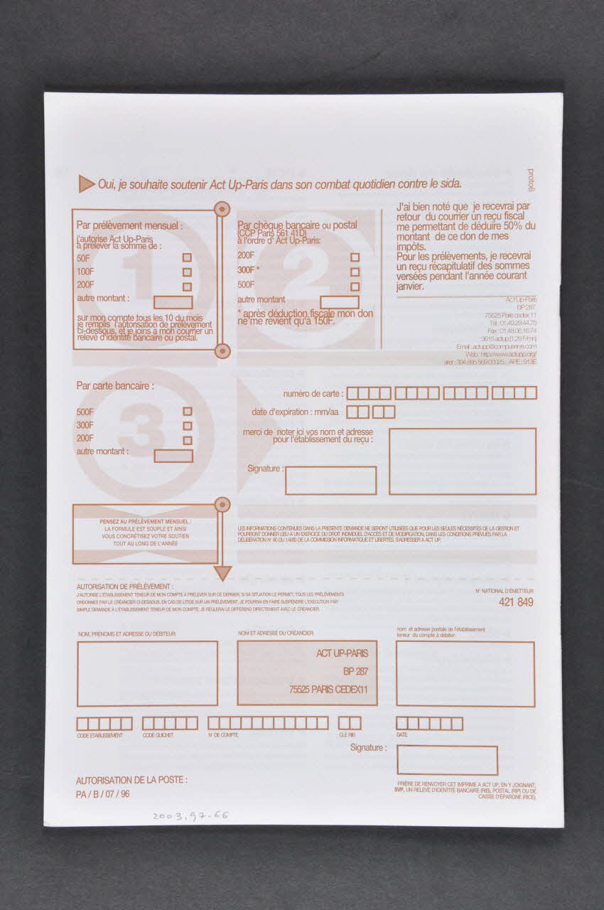 La couverture présente à gauche sur un bandeau vertical marron le titre de la revue, sa date et son numéro d'édition, ainsi que le sommaire. Des textes et quelques tableaux et illustrations marrons se succèdent sur le reste de la couverture et l'intérieur. Le dos contient un bulletin d'adhésion à Act Up-Paris.Inscriptions