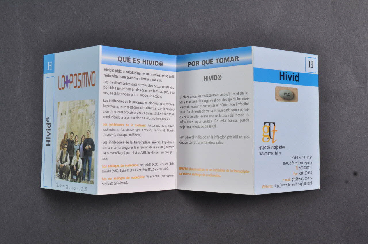 H Hivid // // gTt // grupo de trabajo sobre // tratamientos del VIH // // c/del Pi, 10 1° 2a // 08002 Barcelona España // Tl : 933020411 // Fax : 934120083 // e-mail : gtt@wanadoo.es // Website : http://www.foro-vih.org/gtt.html (au dos)Décor