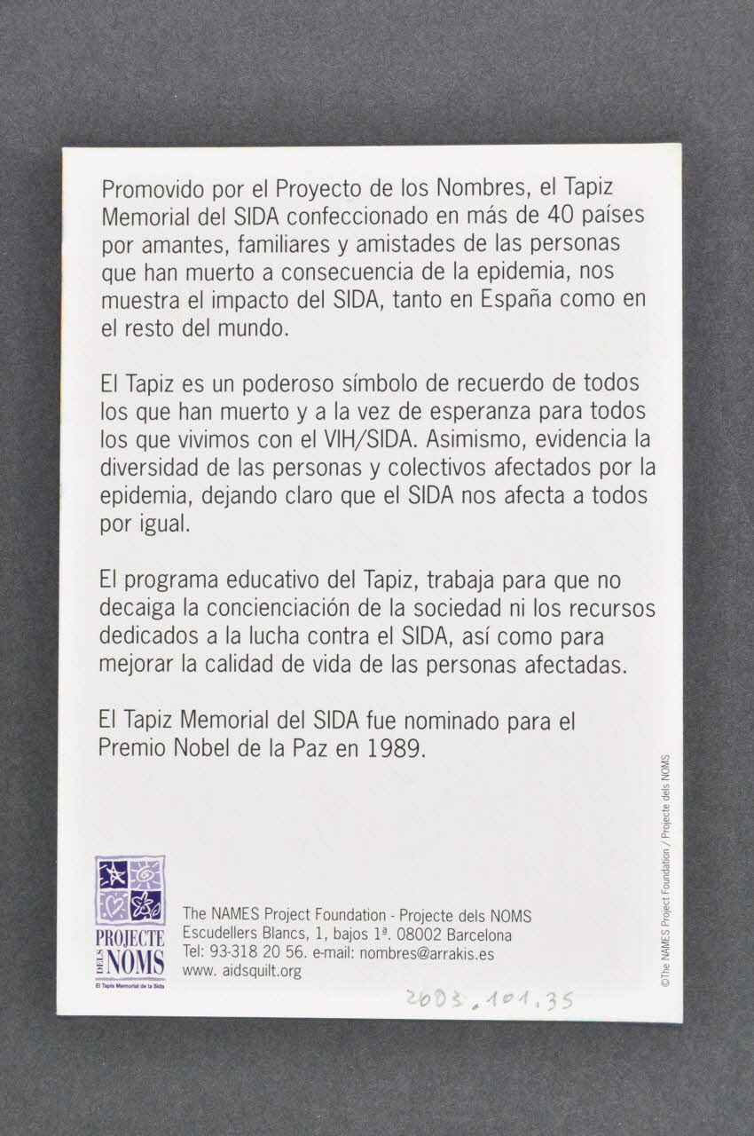 carte postale, "El tapiz memorial internacional del Sida. " (Le patchwork international du sida)