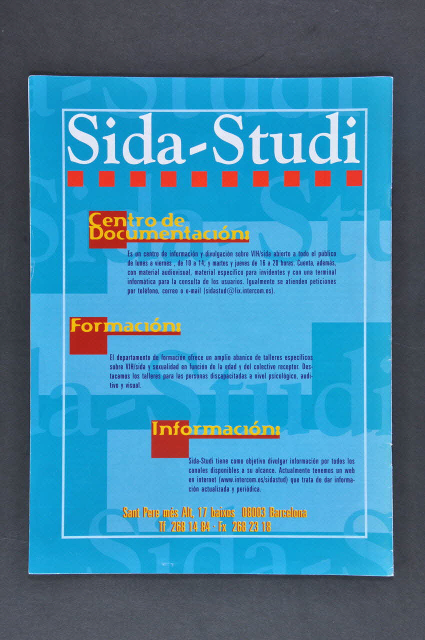 Edita // Sida-Studi // Sant Pere més Alt, 17, baixos // 08003 Barcelona (Sur le bandeau vertical, à gauche de la page 3), à l'intérieurDécor