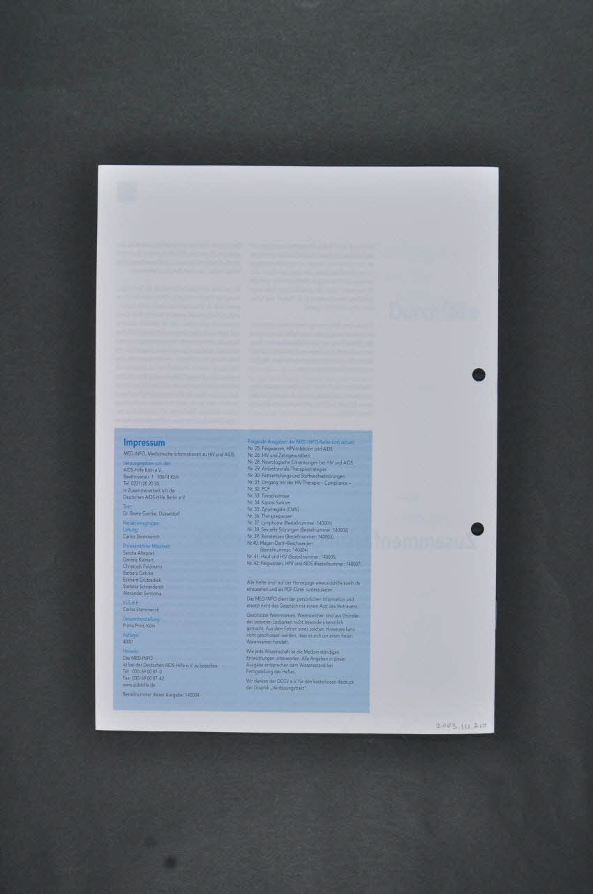 Deutsche // AIDS-Hilfe e.V. (Dans l'angle inférieur gauche de la page, en lettres grises, mêlées au logo.), rectoSous-titre