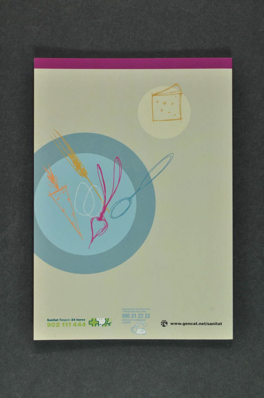 Generalitatde Catalunya // Departament de Sanitat // i Seguretat Social (inscription en noir sur fond vert au milieu en bas), sur la couvertureDécor