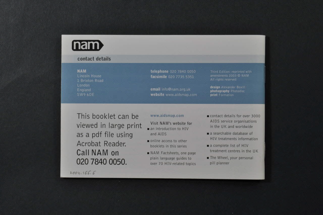 Written and produced by // NAM // Third edition : reprinted with // amendments 2003 (inscription en blanc sur fond bleu foncé dans le coin supérieur gauche sur la page au dos de la couverture), à l'intérieurTexte