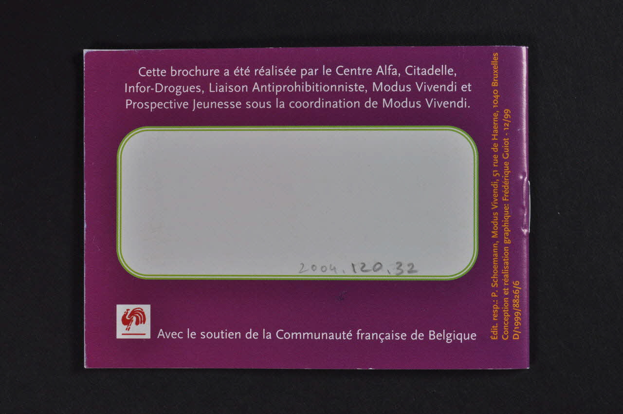 Information de ce que la brochure est réalisée "en collaboration des usagers de drogues psychédéliques et qu'elle s'adresse à des consommateurs et à leurs proches". "Le but de ce document n'est pas d'encourager ou de décourager la consommation de ces substances, mais de donner une information correcte et détaillée, pour un usage à moindre risque."