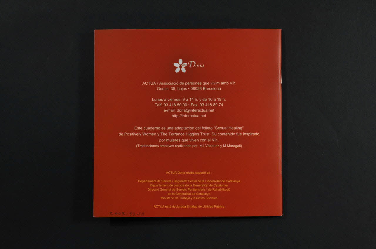 Actua / Associació de persones que vivim amb Vih // Gomis, 38; bajos . 08023 Barcelona (Les coordonnées de l'association sont indiquées en caractères blancs au centre du verso de la couverture.), versoDécor