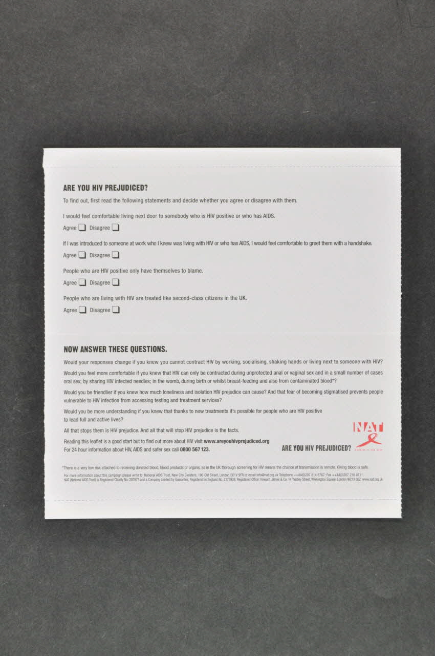 ENVELOPPE, de la campagne : "HIV prejudice test" (Test : préjugés sur le VIH)