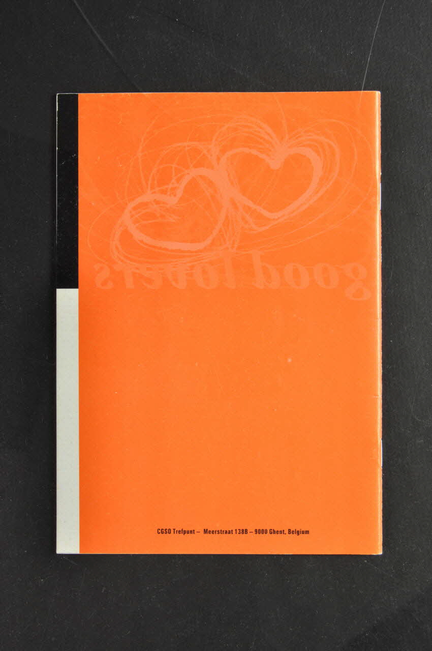 good lovers // Erika Frans // // A NEW CONCEPT OF SEX EDUCATION (imprimé en noir sur orange), sur la couvertureLogo, adresse, nom d'association