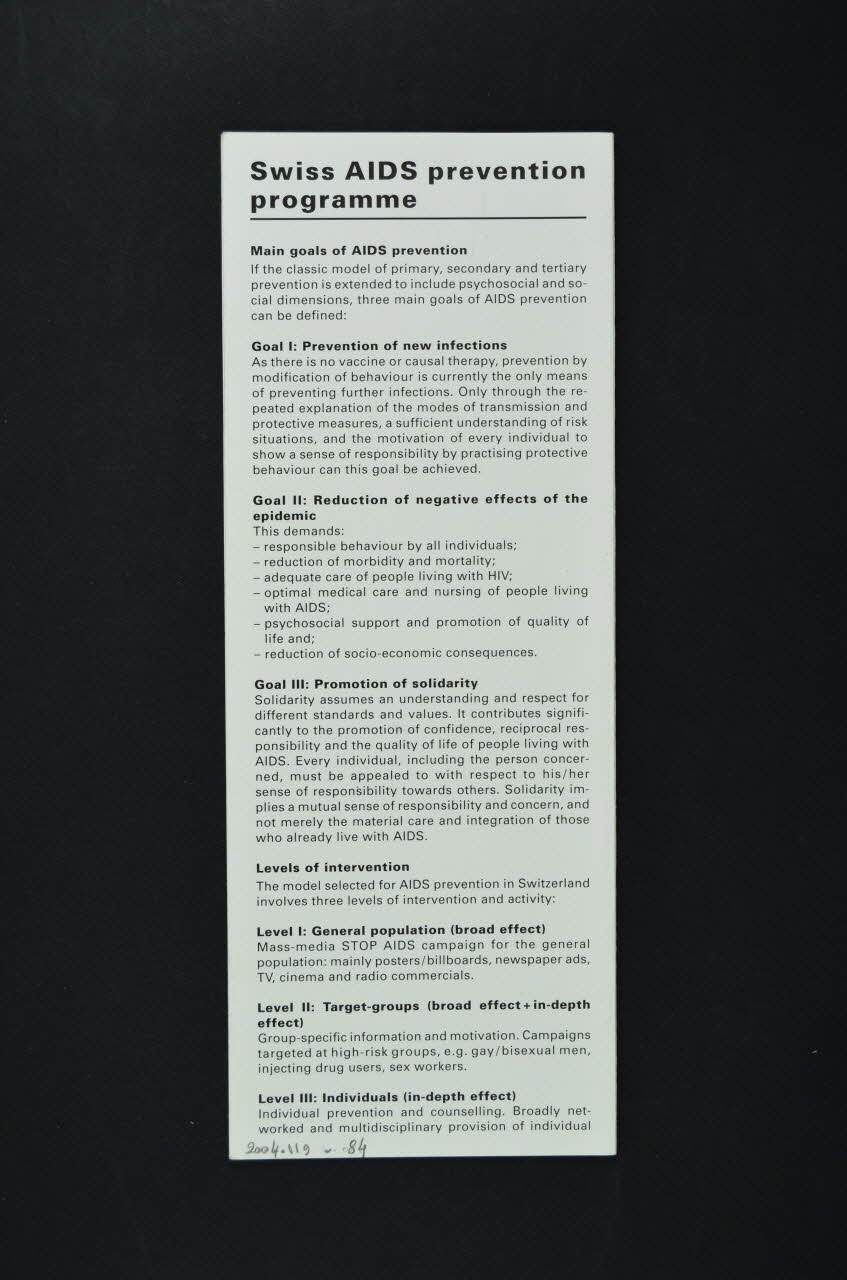 Swiss AIDS prevention // programme, sur la couvertureLégende