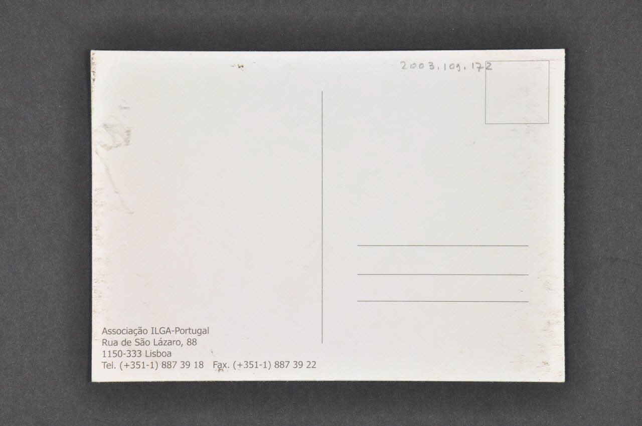 ASSOCIAÇÃO // ILGA PORTUGAL (en bas), rectoLISBOA // CAMARA MUNICIPAL // CULTURA, rectoConcernant le lieu d'exécution, adresse