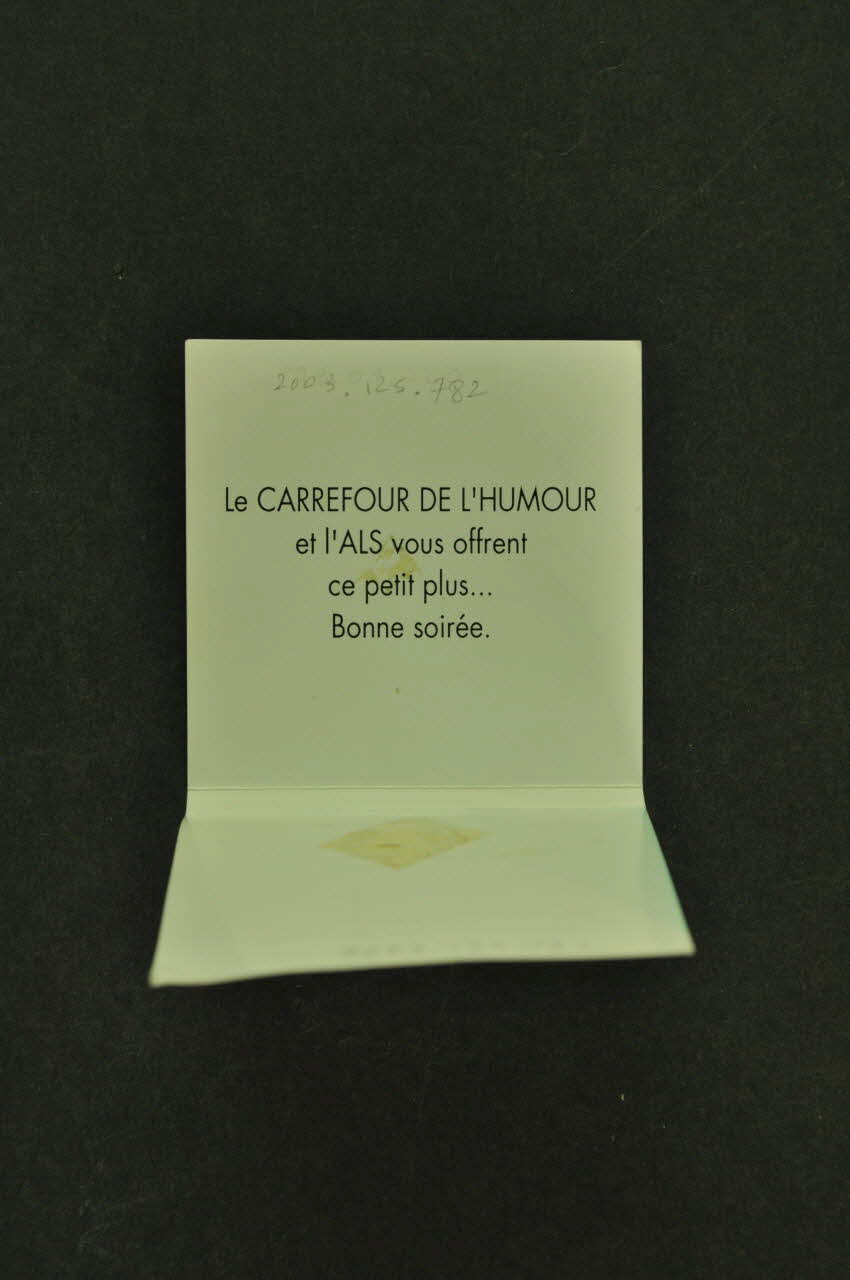 Le carrefour de l'humour // et l'ALS vous offrent // ce petit plus... // Bonne soirée, à l'intérieurNom d'association, adresse