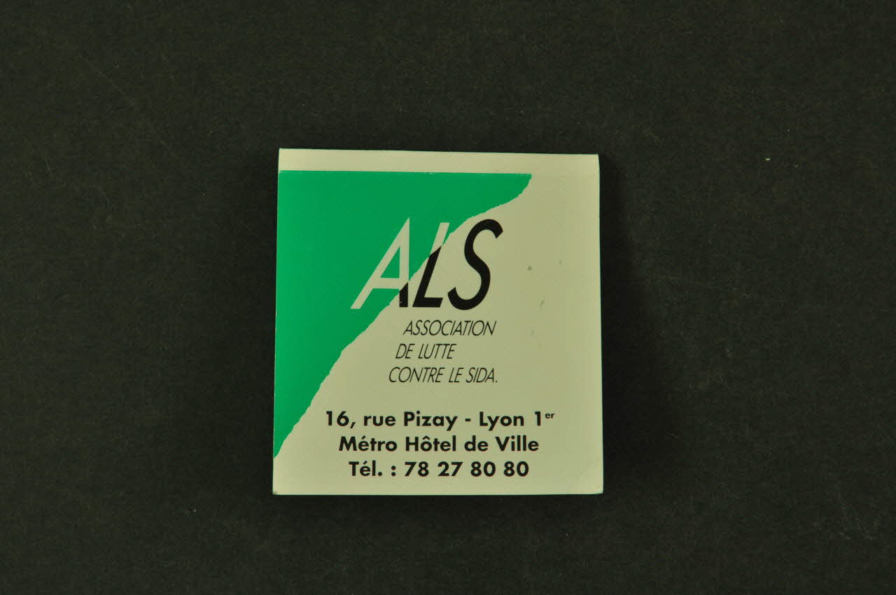 ALS // Association de Lutte contre le Sida // // 16, rue Pizay - Lyon 1er // Métro Hôtel de Ville // Tél. : 78 27 80 80, versoSlogan