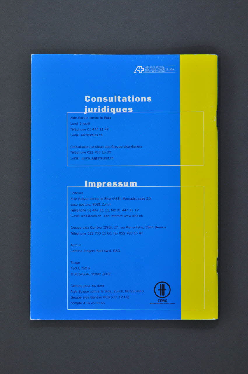 Aide Suisse contre le Sida (ASS), Konradstrasse 20, // case postale, 8031 Zurich // [...] // Groupe Sida Genève (GSG), 17, rue Pierre-Fatio, 1204 Genève (de la quatrième de couverture), au centreSommaire