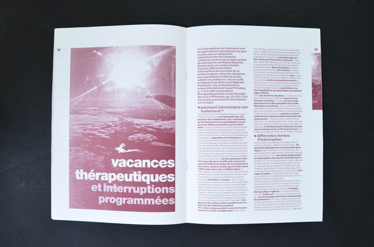 Il s'agit d'un bulletin d'information composé de trente-et-une pages imprimées en bordeaux sur du papier blanc et reliées entre elles par deux agrafes. Le nom, le numéro, la date de publication de la revue ainsi que son sommaire sont visibles sur le bord latéral gauche de la couverture. A l'intérieur, outre la grande quantité de texte on compte quatre photographies. La quatrième de couverture fait office de bulletin de souscription en faveur de l'association Act Up-Paris.Inscriptions