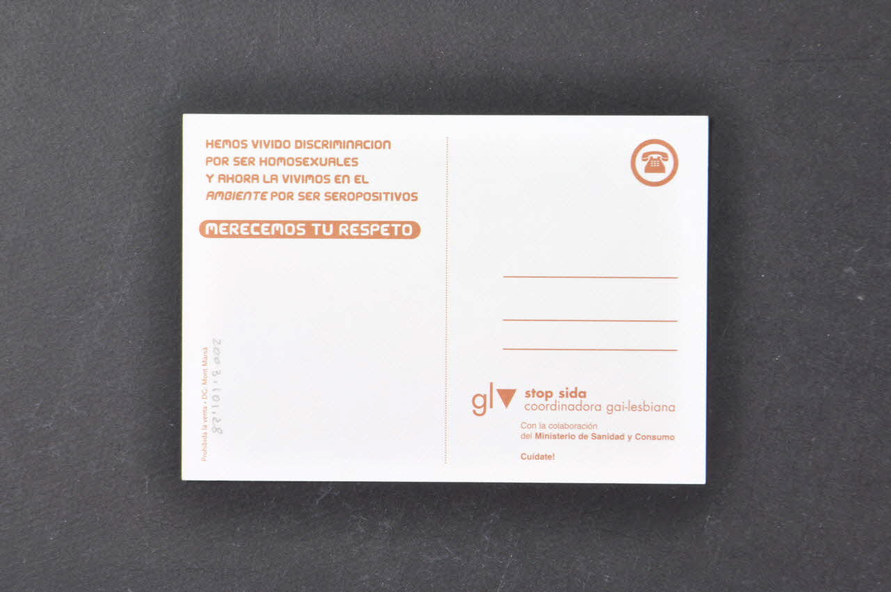 gl stop sida // coordinadora gai-lesbiana // // Con la colaboracion // del Ministerio de Sanidad y Consumo // // Cuidate ! (en bas à droite), versoTexte