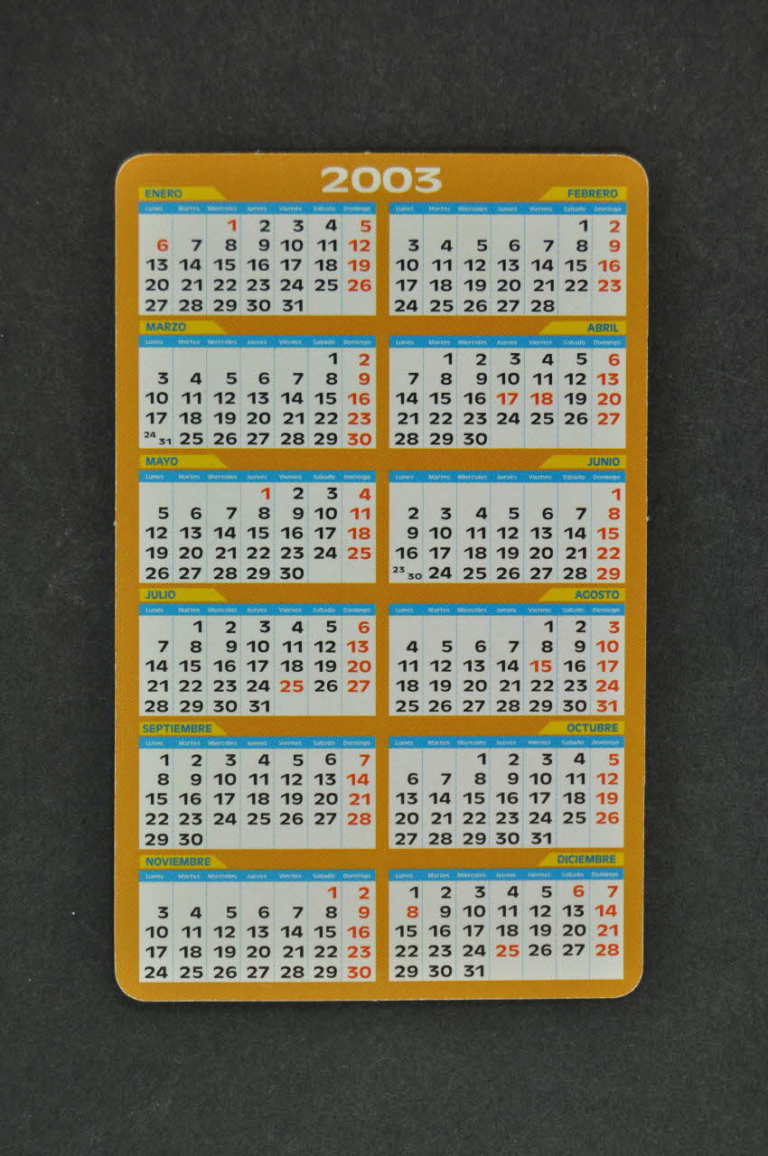 2003 // [...] (Sur toute la surface, calendrier mensuel réparti sur douze vignettes.), versoLogo
