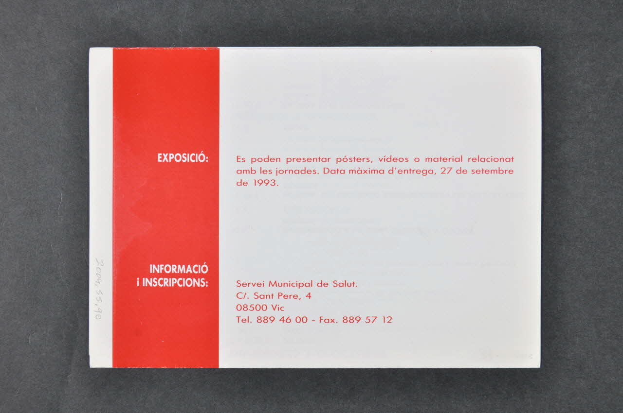 AJUNTAMENT DE VIC // Departament de Benestar Social // Servei Municipal de Salut // // Diputacio de Barcelona // // Generalitat de Catalunya (En rouge, en partie inférieure, liés à trois blasons.), sur la couvertureDécor