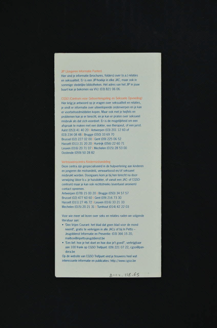 - CGSO Trefpunt // - Minister van Werkgelegenheid en Gelijke-kansenbeleid L. Onkelinx // - Educatief Theater Antwerpen (trois logos alignés en bas de la couverture), sur la couvertureDécor