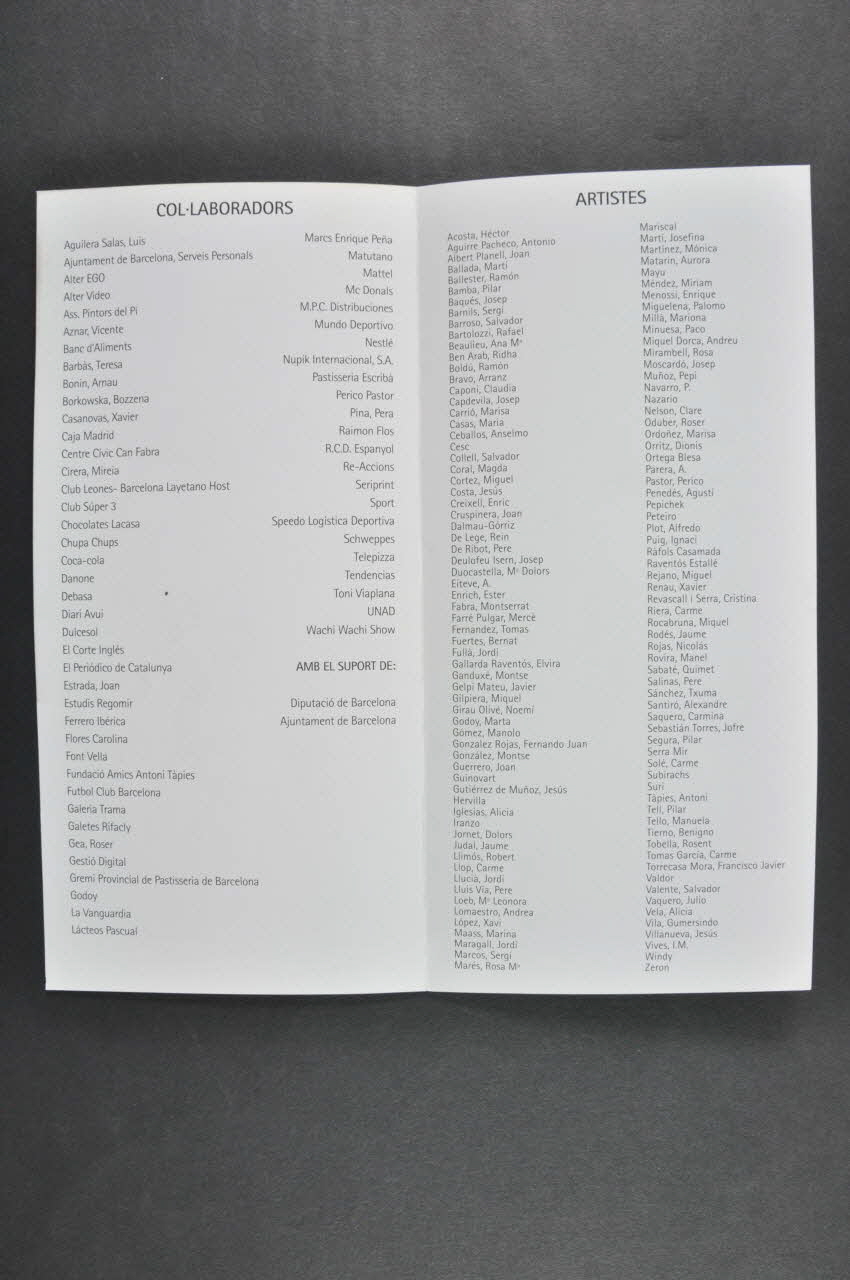 Il s'agit d'un petit dépliant en deux volets en papier glacé épais. Il est en catalan. Sur la couverture on peut voir une reproduction d'une oeuvre d'art (un peintre peint sur un mur). En dessous il y a le titre de la manifestation, sa date d'ouverture, ses horaires et ses coordonnées.