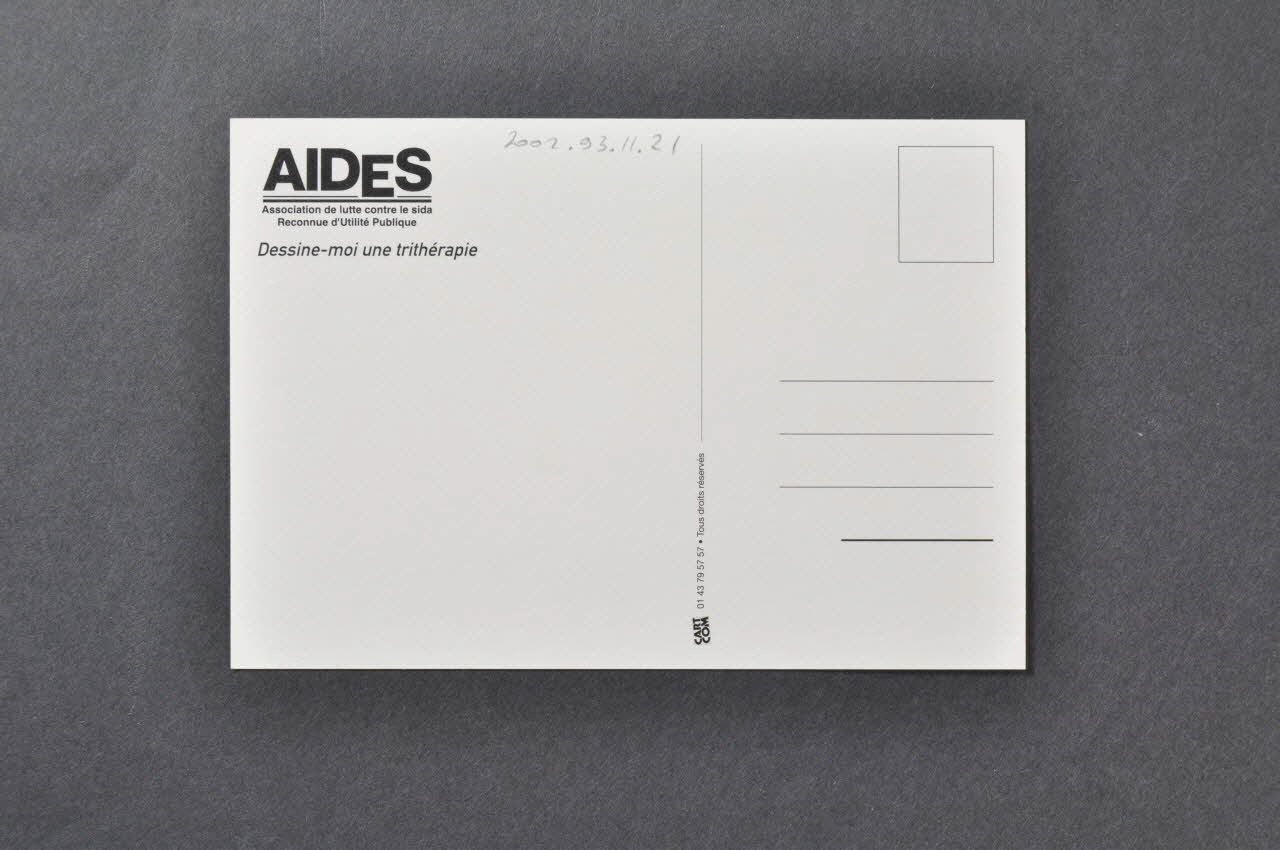 AIDES // Association de lutte contre le sida // Reconnue d'Utilité Publique // // Dessine-moi une trithérapie (angle supérieur gauche), versoDécor