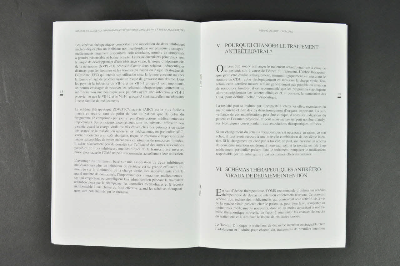 AMÉLIORER L'ACCES // AUX TRAITEMENTS ANTIRÉTROVIRAUX // DANS LES PAYS A RESSOURCES // LIMITÉES (Titre de la brochure inscrit en noir et rouge dans le haut de la page), sur la couvertureDate