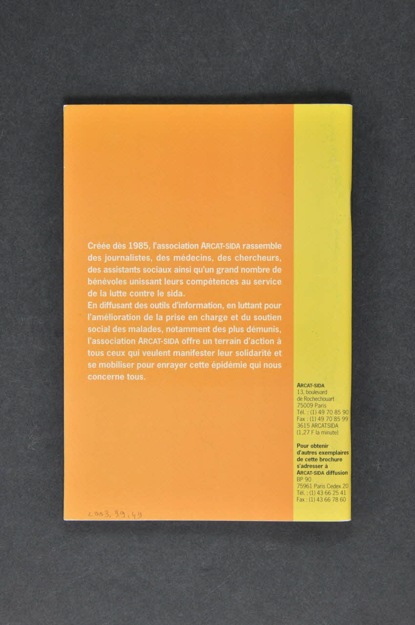 ARCAT-SIDA // 13, boulevard // de Rochechouart // 75009 Paris // Tél. : (1) 49 70 85 90 // Fax : (1) 49 70 85 99 // 3615 ARCATSIDA // (1,27 F la minute) (Dans le colonne de droite.), versoDécor