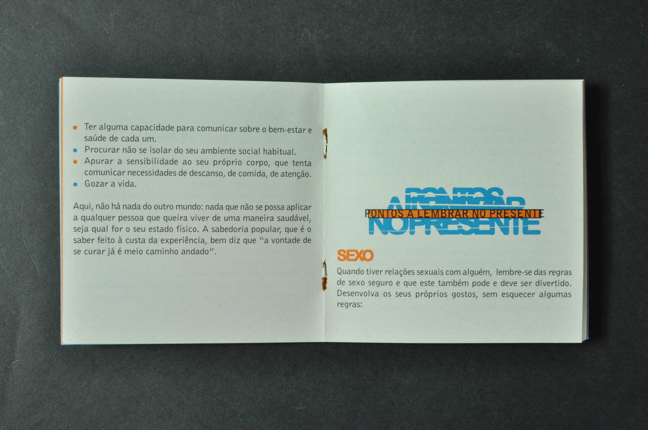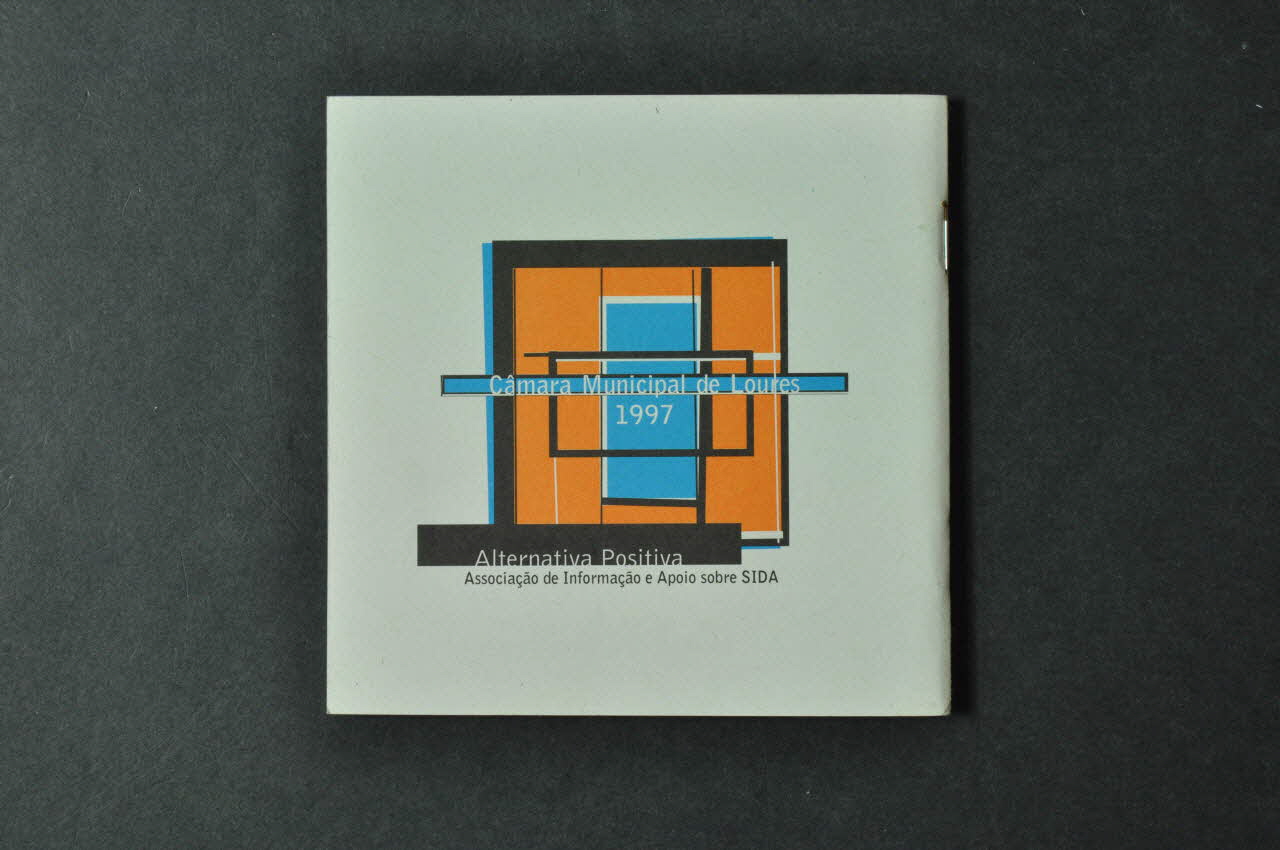 Câmara Municipal de Loures // 1997 // // Alternativa Positiva // Associaçao de Informaçao e Apoio sobre Sida (Le logo est placé sur la quatrième de couverture. // Le logo est formé d'un carré rempli de rectangles orange et bleus, vers le milieu et en-dessous on voit le nom de l'association imprimé en blanc et noir.), sur la couvertureDécor