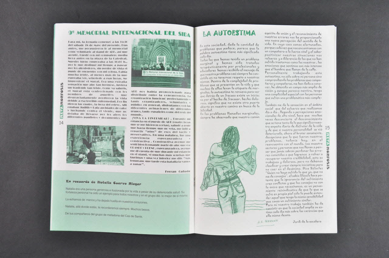 Précisions sur le contenu : - Présentation de l'association ACAS (Associacio Comunitaria Anti Sida de la Garrotxa) - Présentation de l'ADAD (Associacio de reinsercio laboral i social a la Garrotxa - Propositions culturelles (randonnée dans un parc naturel) - Témoignages de personnes séropositives - Comptes rendus de la conférence internationale du sida de Barcelone (avec photos) - Projet dents saines (état des dents et usage de drogues) - Jeux et mots croisés.
